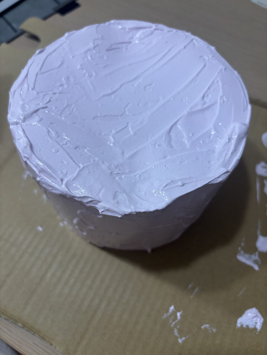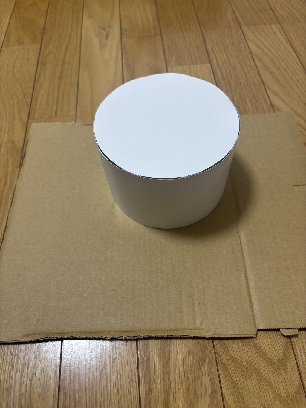 作り方はとっても簡単、紙箱の円柱の土台にジョイントコークをぺたぺた、ナッペするだけです!