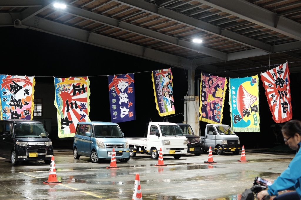 翌朝はまだ薄暗いうちから漁港へ。海風の中、漁師さんたちが干鯛を積み込む様子がとても神聖。