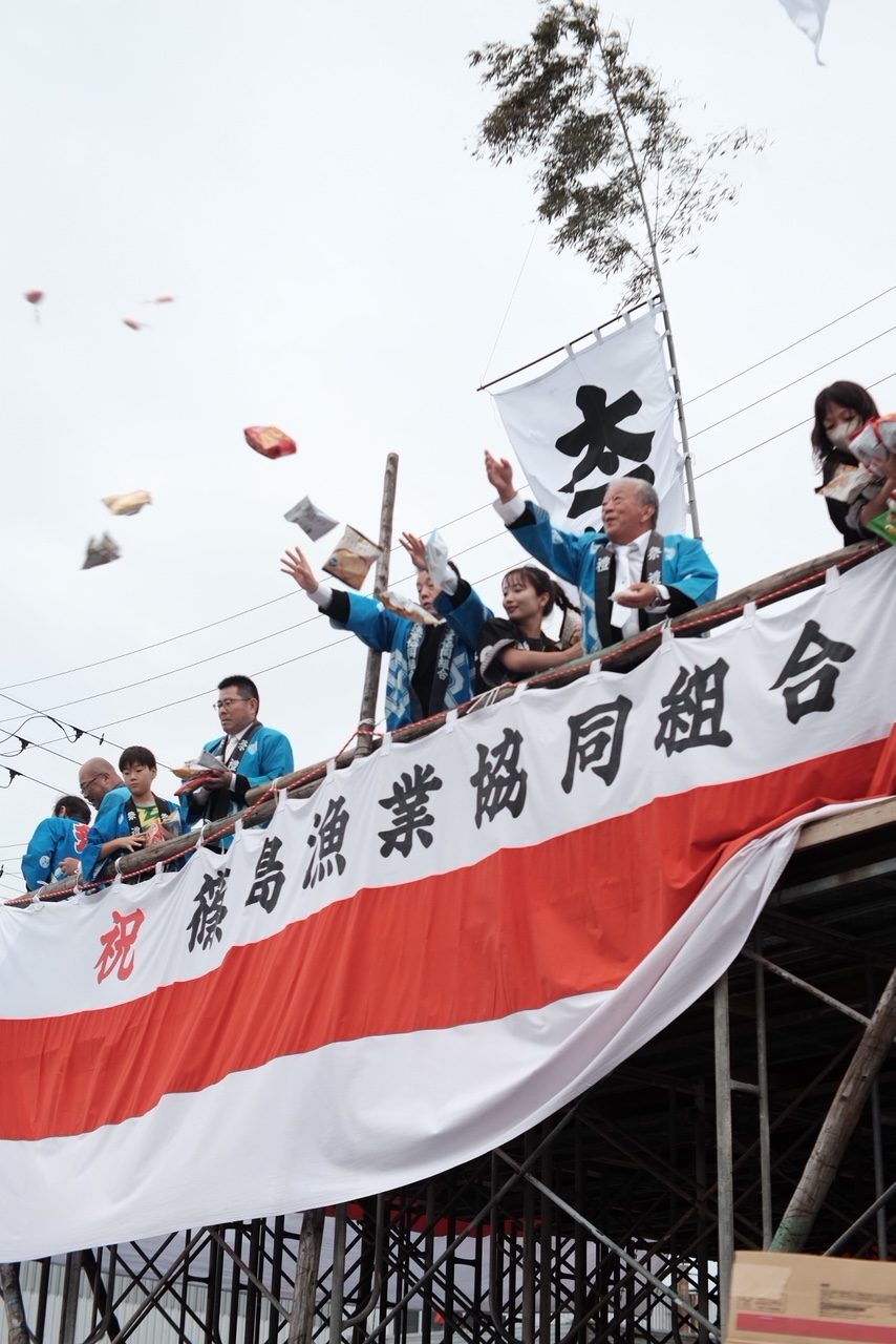港では奉納式のあと、餅まきや抽選会、ステージイベントなどが開催。