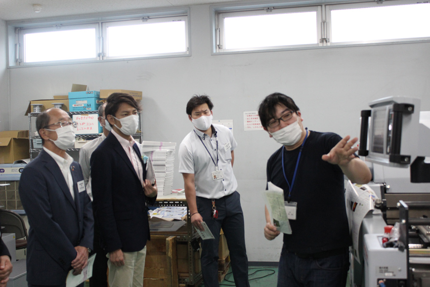 コロナウイルスの感染症対策として通常の会社見学とは違い、少人数グループに