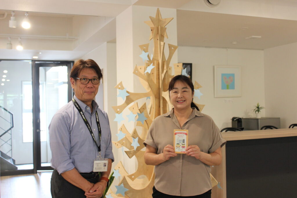 令和6年12月2日(月)一ノ瀬芳翠さんと須山マイコさんが来社されました。一ノ瀬さんは「愛と平和のメッセージ」をテーマに国内外で作品を制作される書道作家さんで、須山さんは調香師として天白区で事業をされています。 先日18日に放送された一ノ瀬さんがパ...