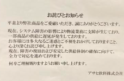 出荷停滞、品薄長期化と飲食店にもかなり影響だ