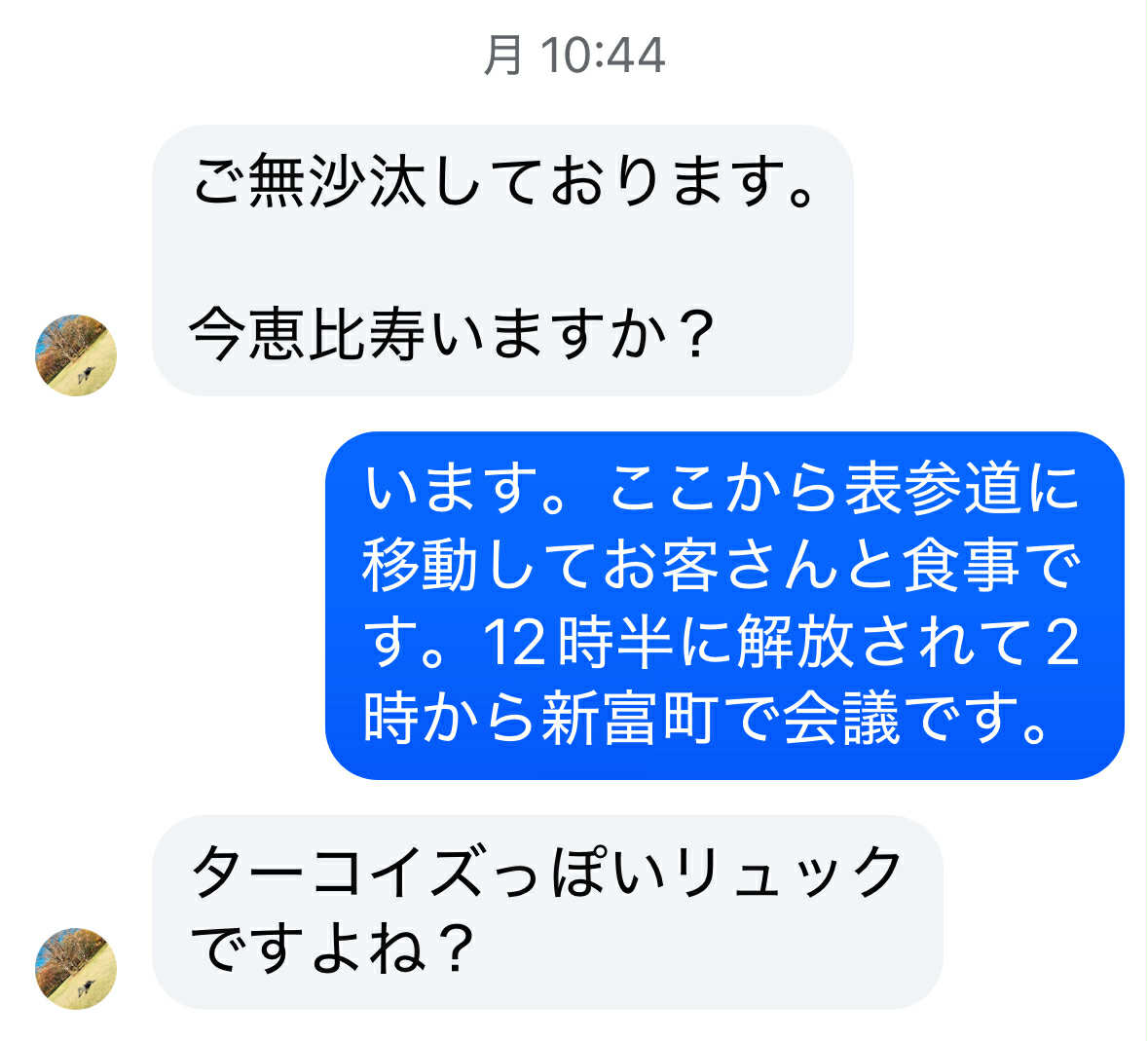 確かに恵比寿にいるし、ターコイズ色のカバンも持っている