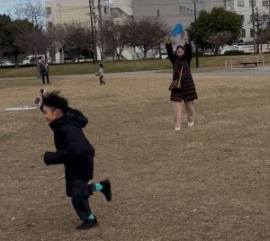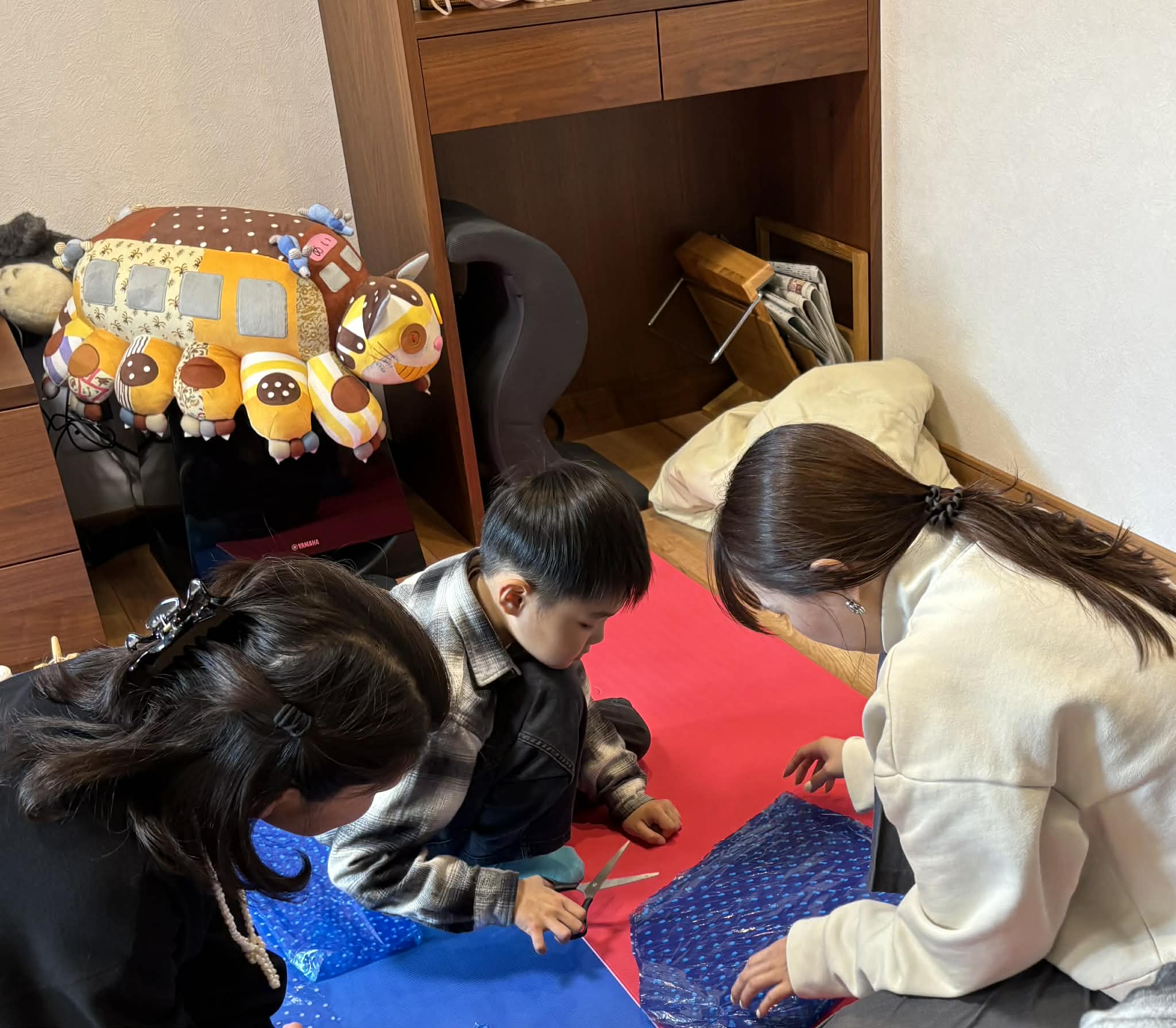 冒頭の写真はママと自身の妹が孫とともに自家製の凧作りの様子