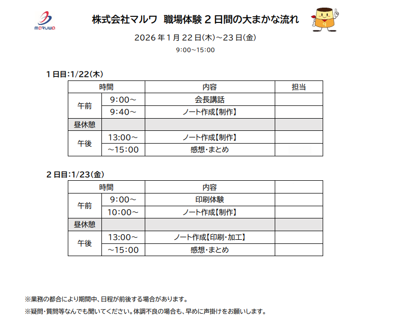 さて今日から一週間、大学生のインターンシップがある↓↓↓