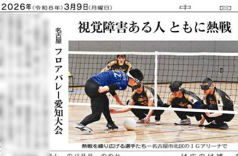 当日の別の紙面には視覚障害の人と共にプレーする