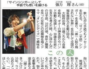 3月10日の地元新聞にはサイン(手話)シンガーの名乗る人の