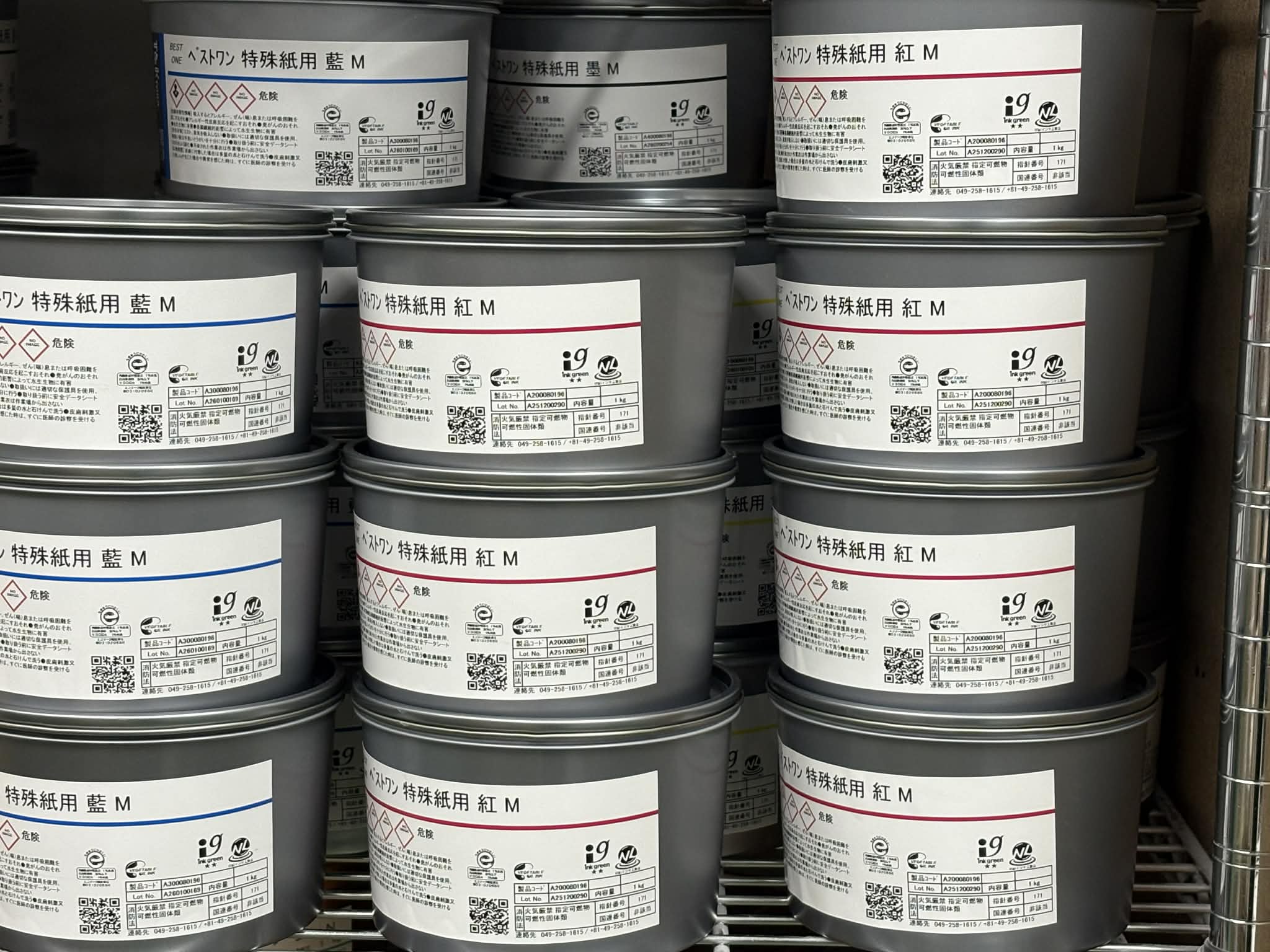 このインキは特練りと言い、多くのインキを混ぜて出来上がる色